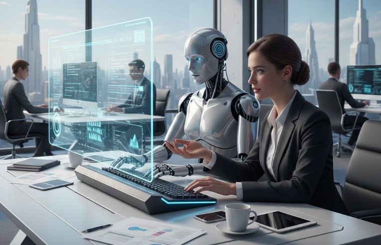 مستقبل کا دفتر نہ تو مکمل طور پر مشینوں کے قبضے میں ہوگا اور نہ ہی انسان ٹیکنالوجی سے بے نیاز رہ سکے گا۔ اصل حقیقت انسان اور مشین کے باہمی اشتراک میں پوشیدہ ہے، جہاں اے آئی رفتار، درستگی اور تجزیے کی قوت فراہم کرتی ہے اور انسان سمت، فیصلہ اور ذمہ داری کا تعین کرتا ہے۔ یہی اشتراک آنے والے وقت میں پیداواری صلاحیت بڑھانے اور دفتری پیشوں کو نئی اہمیت دینے کا باعث بنے گا۔